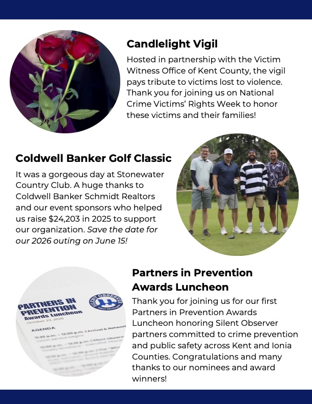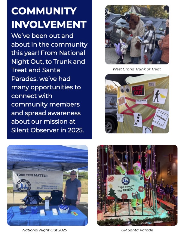 2025 marked a year of momentum for Silent Observer. With the continued support of our partners, law enforcement, and community members, we strengthened the connection between anonymous tips and real-world impact.